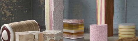 Kollektiv Plus Zwei experiment with materials for their sweet-themed stools and objects. For images of materials they have created go to Blogroll for a link