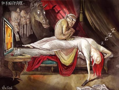 David Rowe won the 2013 Behind The Lines Cartoonist of the Year Award. Behind The Lines exhibition is at The Museum of Australian Democracy. See Blogroll for a link to Rowe’s work at the Aust.Fin.Review.