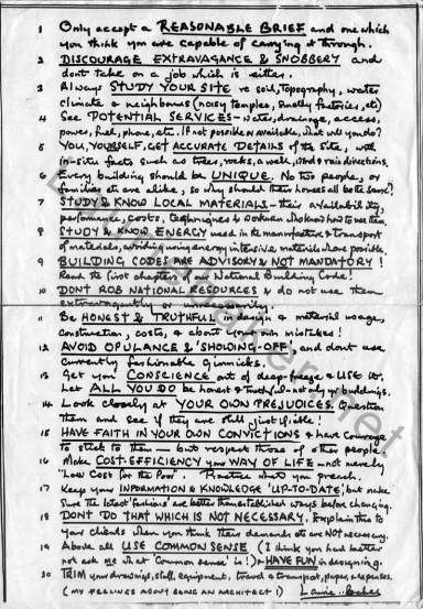 Booklets and writing by Laurie Baker on brickwork and low cost housing are on the lauriebaker.net website.