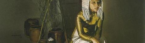 Vietnamese painter, Do Quang Em’s still-life painting experience, shows in his portraits of still women. Images from various sources.