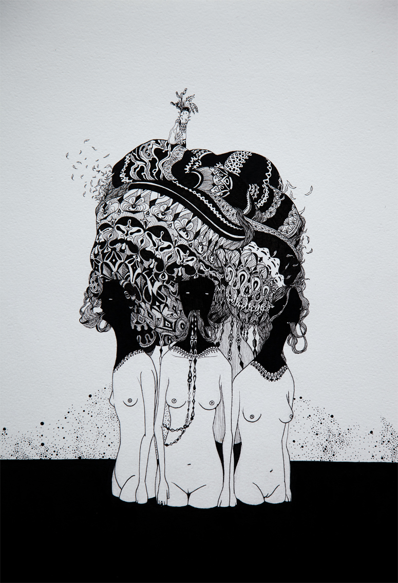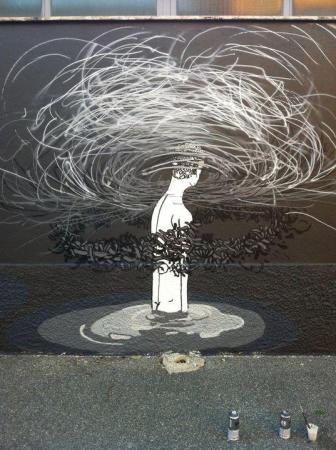 Shades of Aubrey Beardsley’s style in Brazilian artist, Herbert Baglione’s black & white illustrations & street art. A link to his site is under Blogroll.