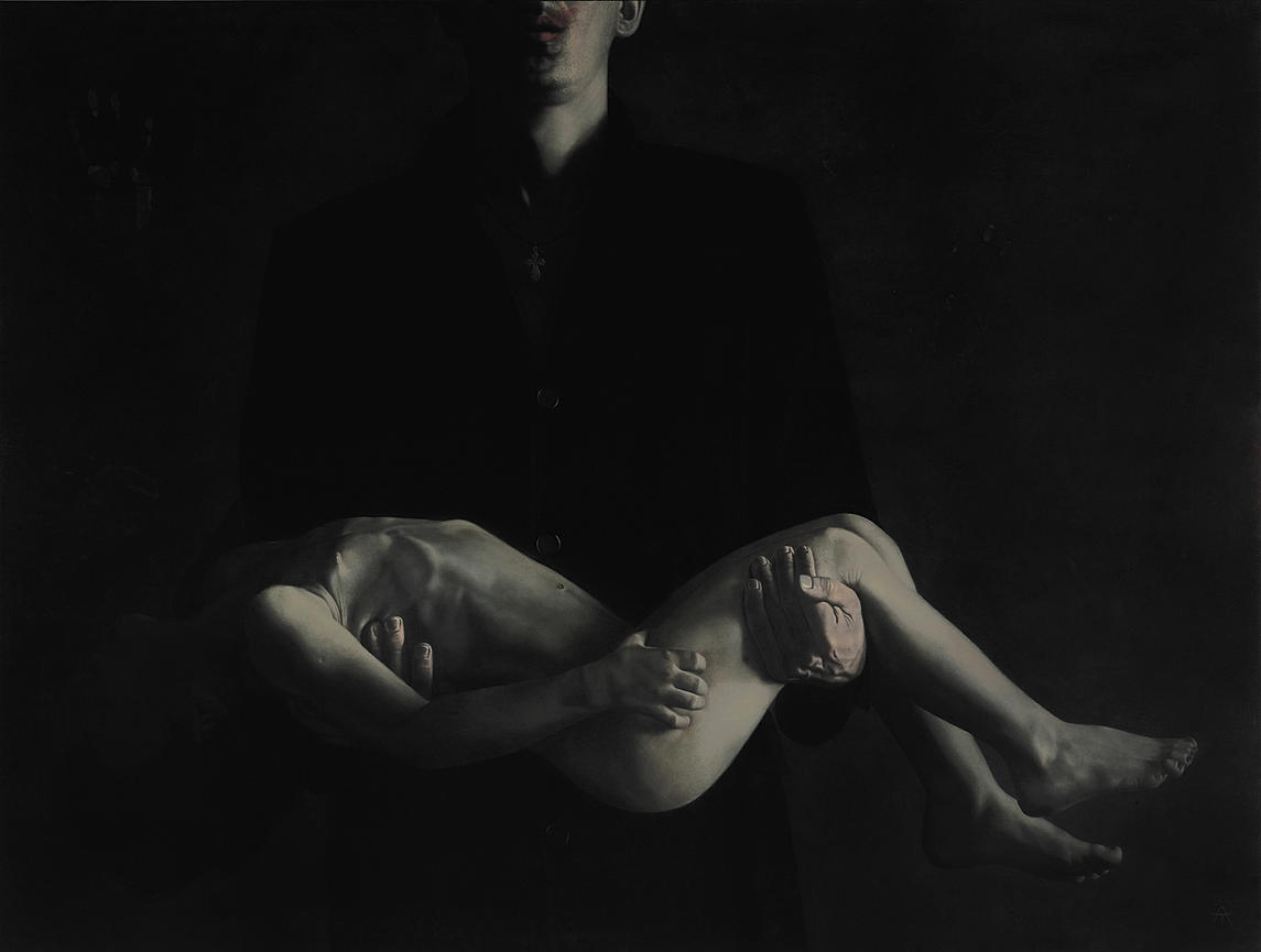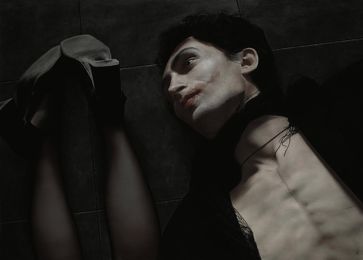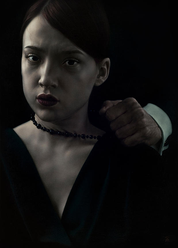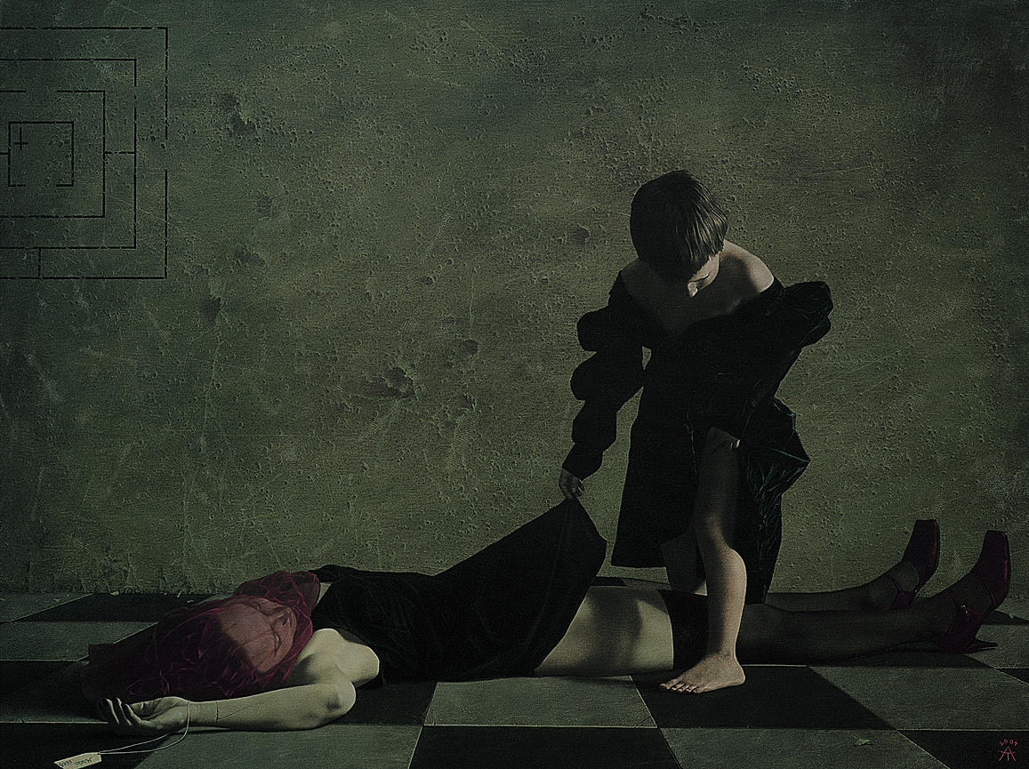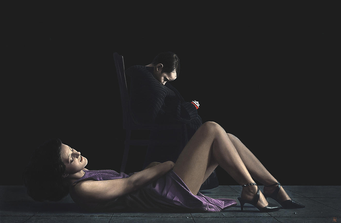An unwholesome narrative or just film noir/comic strip noir/photo noir transposed to oil painting. The photoreal work of Russian artist Alexander Timofeev, now living in Berlin. See a link under Blogroll.