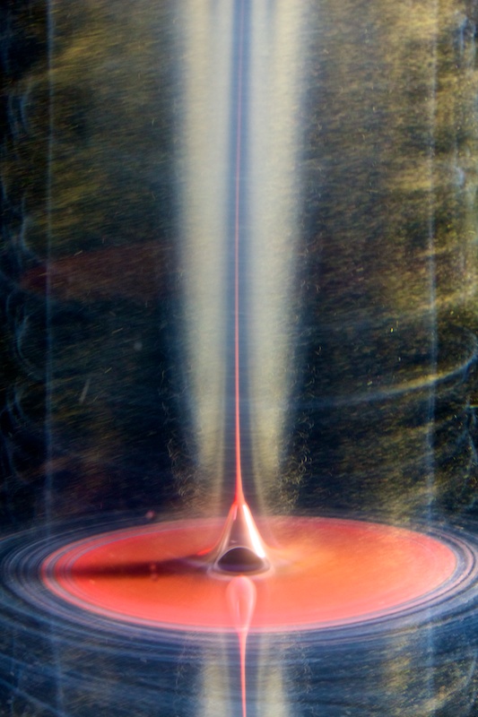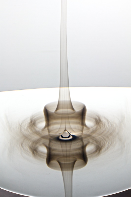 Structure of Vortices: energy flow through a whirlpool or vortex. In a transparent cylindrical tank, fresh water rotates into a whirlpool at different speeds. When ink is introduced, all kinds of forms can be seen /