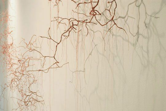 The thread of it: Boston sculptor & installation artist, Jenine Shereos’ filaments of crocheted or knitted art using human hair & thread. See Blogroll for a link.