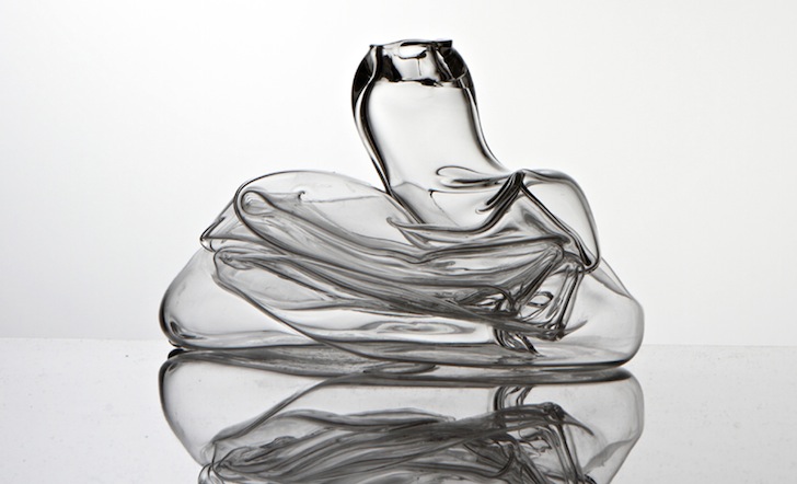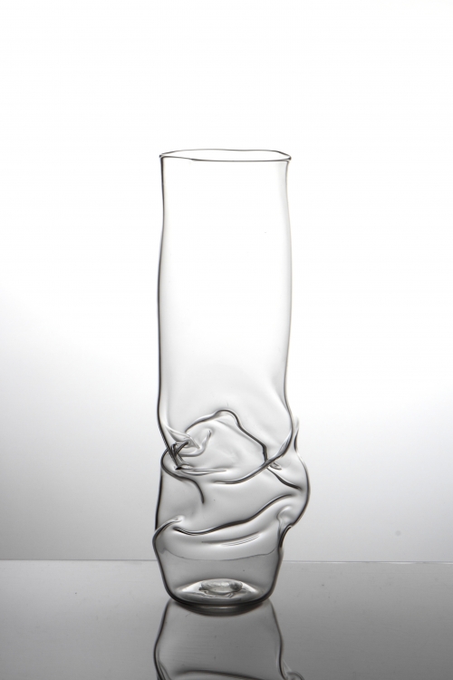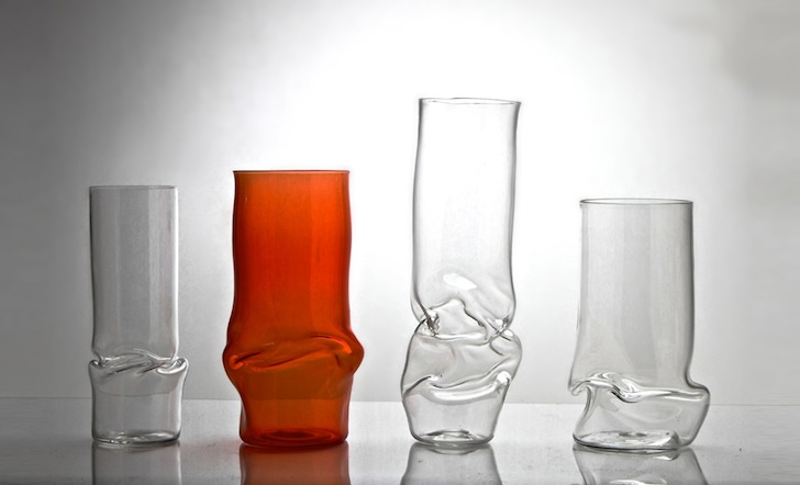 Faults provide solutions: ‘off-center, in glassblowing vocabulary, refers to a shape displaced…’ Offcentre, N.Y., take advantage of this displacement in their vessels & glass art (& lights, not shown). See Blogroll for a link.