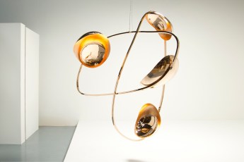 Apparent Magnitude: Mirror polished and black patinated solid bronze, Opal Glass /