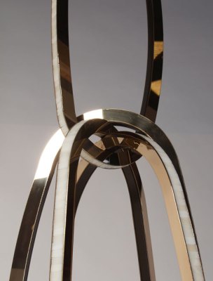 Binary: Mirror polished and patinated hand formed solid bronze, Opal Glass /