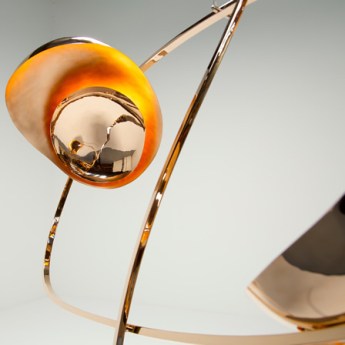 Fouette II: Mirror polished hand formed solid bronze, Opal Glass /