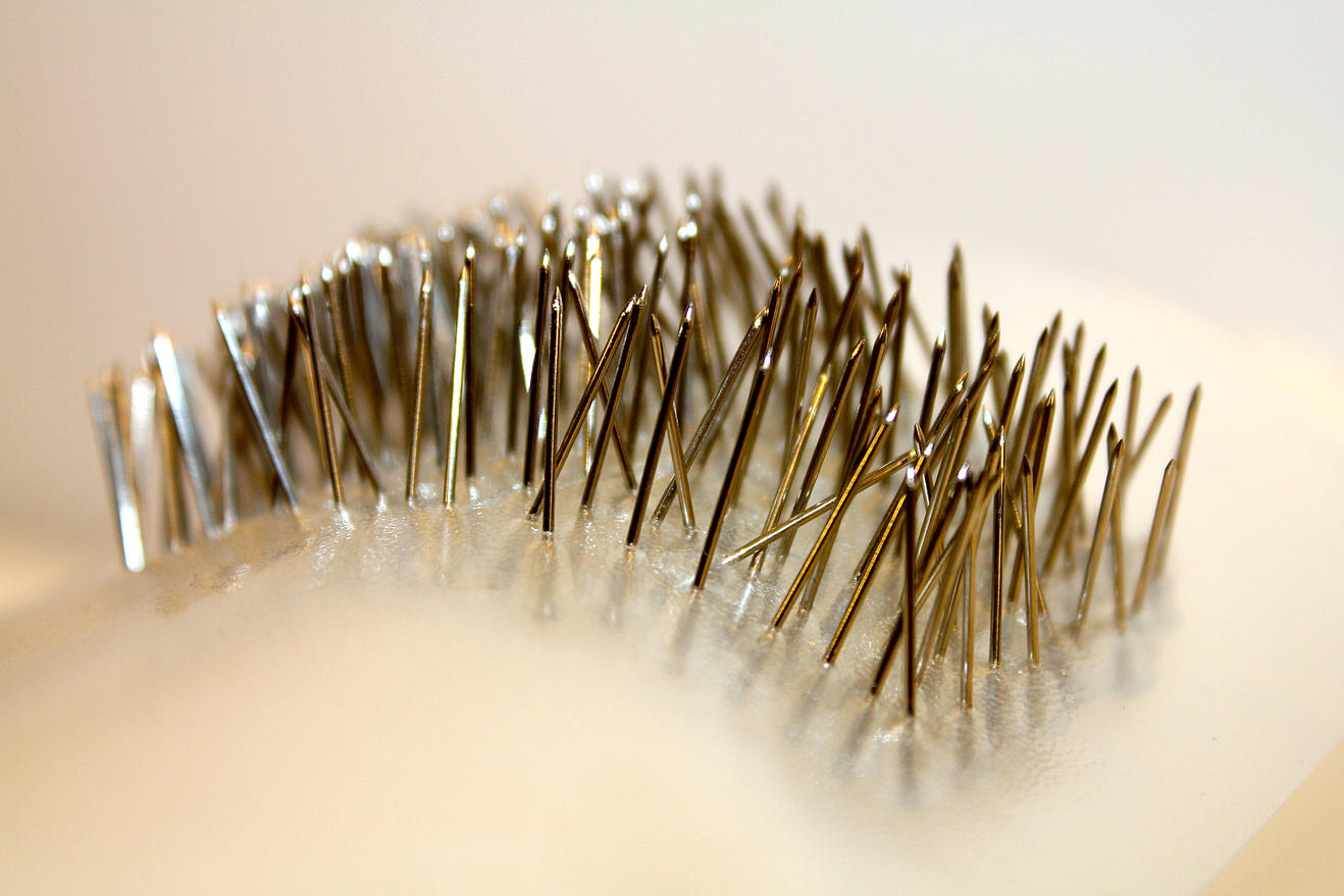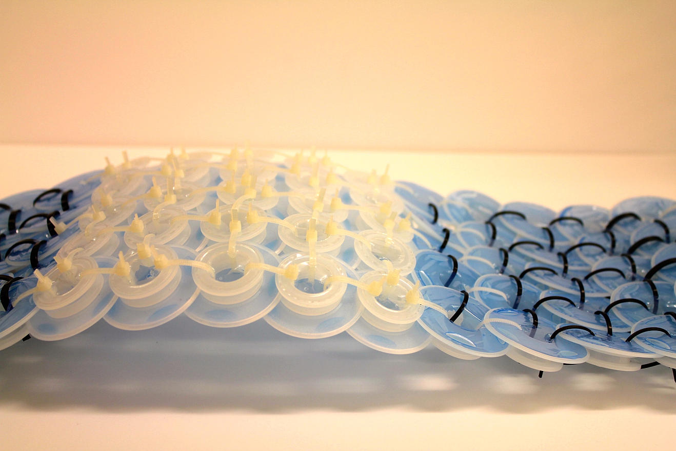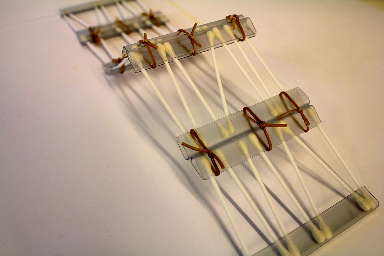 Engineered structures, resulting in malleable forms, utilising acrylic, wood and metal. /