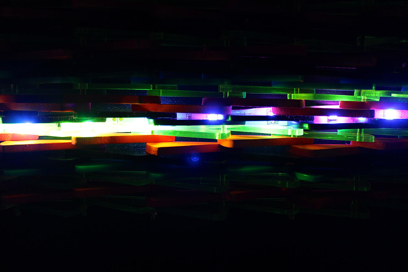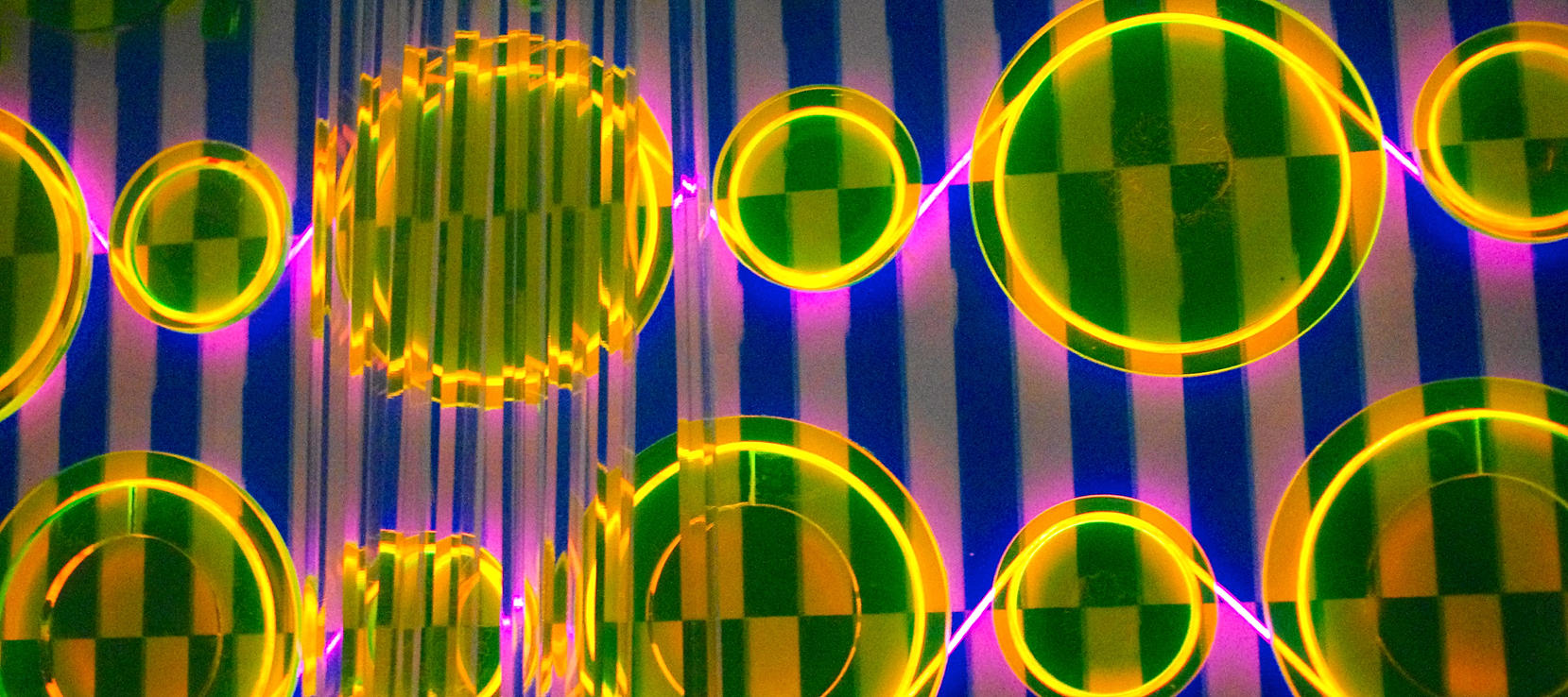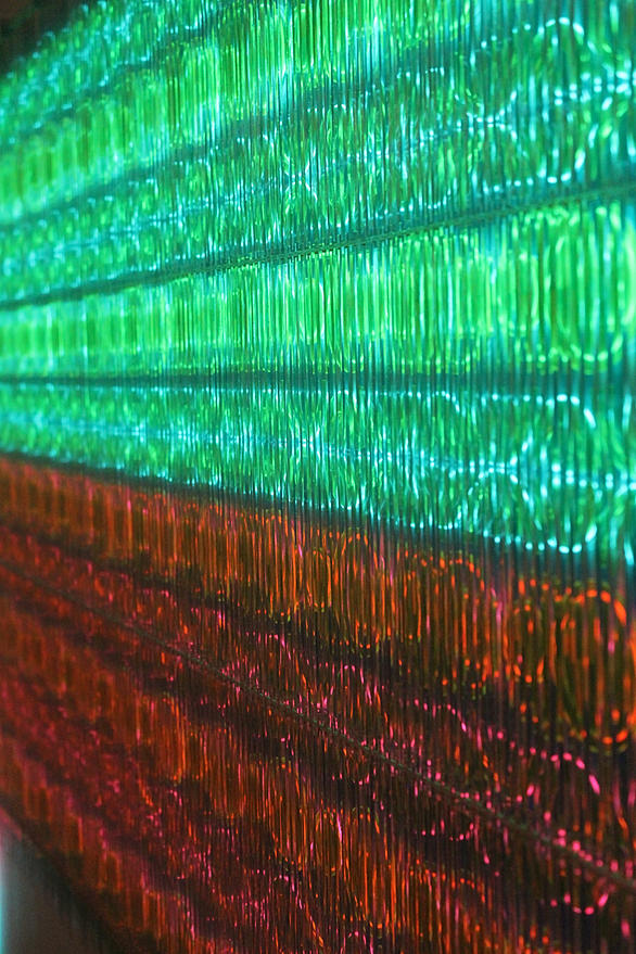 Elizabeth creates Illusions of line, light and colour through acrylic, ell wire, metal and wood /
