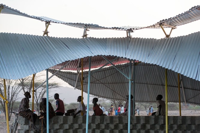 Konokono Vaccination Centre, Turkana, Kenya, by SelgasCano and Ignacio Peydro and built by students in Jose Selga’s MIT unit – http://www.domusweb.it/en/interviews/2015/09/08/interview_to_selgascano.html /