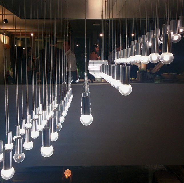‘Edison is a kinetic lighting installation for the Ephinany Hotel, San Alto, which can physically mimic the movement of people walking up the spiral staircase below it, for example, or ramp up its movement in the evenings as the hotel’s bar and restaurant buzz with activity. Edison can also link up to other sorts of data streams. It could jiggle with life when someone mentions the hotel on social media, perhaps, or adjust its movement to reflect the day’s weather in Palo Alto.’