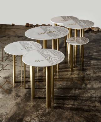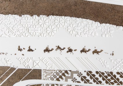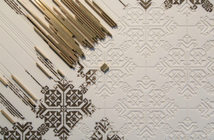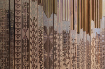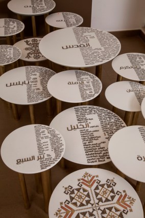 In 2015, designers, Nisreen & Nermeen Abu-Dail of Naqsh Design House, Jordan, explored patterns of Palestinian embroidery traditions carved into wood with copper accents. See Blogroll for a link..