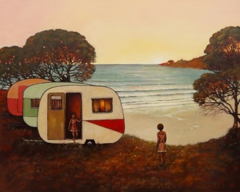 Stella Clarke’s ‘Nostalgia’ paintings pique the memories of 1950’s-60’s Victorian beach holidaymakers. Born in England, she lives in Australia. See Blogroll for a link.