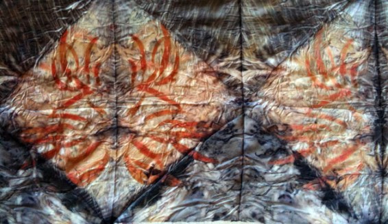 Selecting from the printed textiles, using natural dyes, of Australian, India Flint. She works with fallen leaves, stones & bones. See Blogroll for a link to her site.