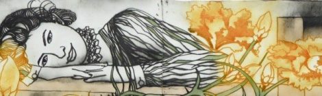 The picturesque: Mandy Renard’s fauna & flora adorned figures using dry point etching. She lives in Tasmania. See Blogroll for a link to Landmark under M.R.