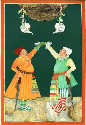 Saira Wasim mostly uses gouache, gold or silver leaf on wasli paper – sometime tea stained wasli paper /