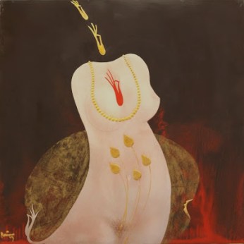 Dihn Quan’s lacquer painting honours women & his Vietnamese Buddhist beliefs. See Blogroll for a link to more information on the artist at the AiBo Gallery, N.Y.