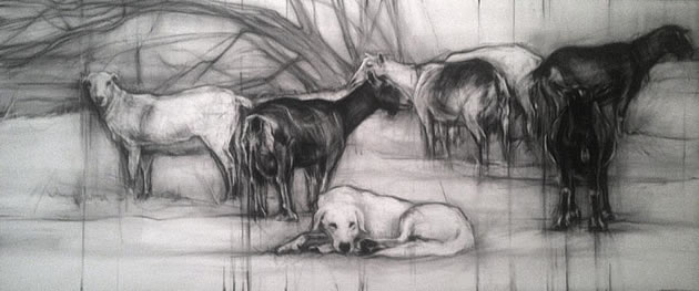 In American artist, April Coppini’s drawings, she wants to ‘record something wild, unseen about the form of animals; movement, life, the space between things’. See Blogroll for a link.