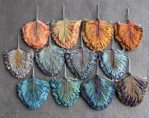 Smocked, plant-dyed silk, jewellery by Eva, Birmingham, UK. A selection of her Tinctory range of brooches, pendants, earrings. See Blogroll for a link.