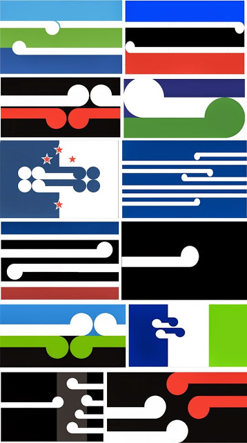 Some of the many appearances of the Gordon Walters ‘koru’ to designs of a new New Zealand flag /
